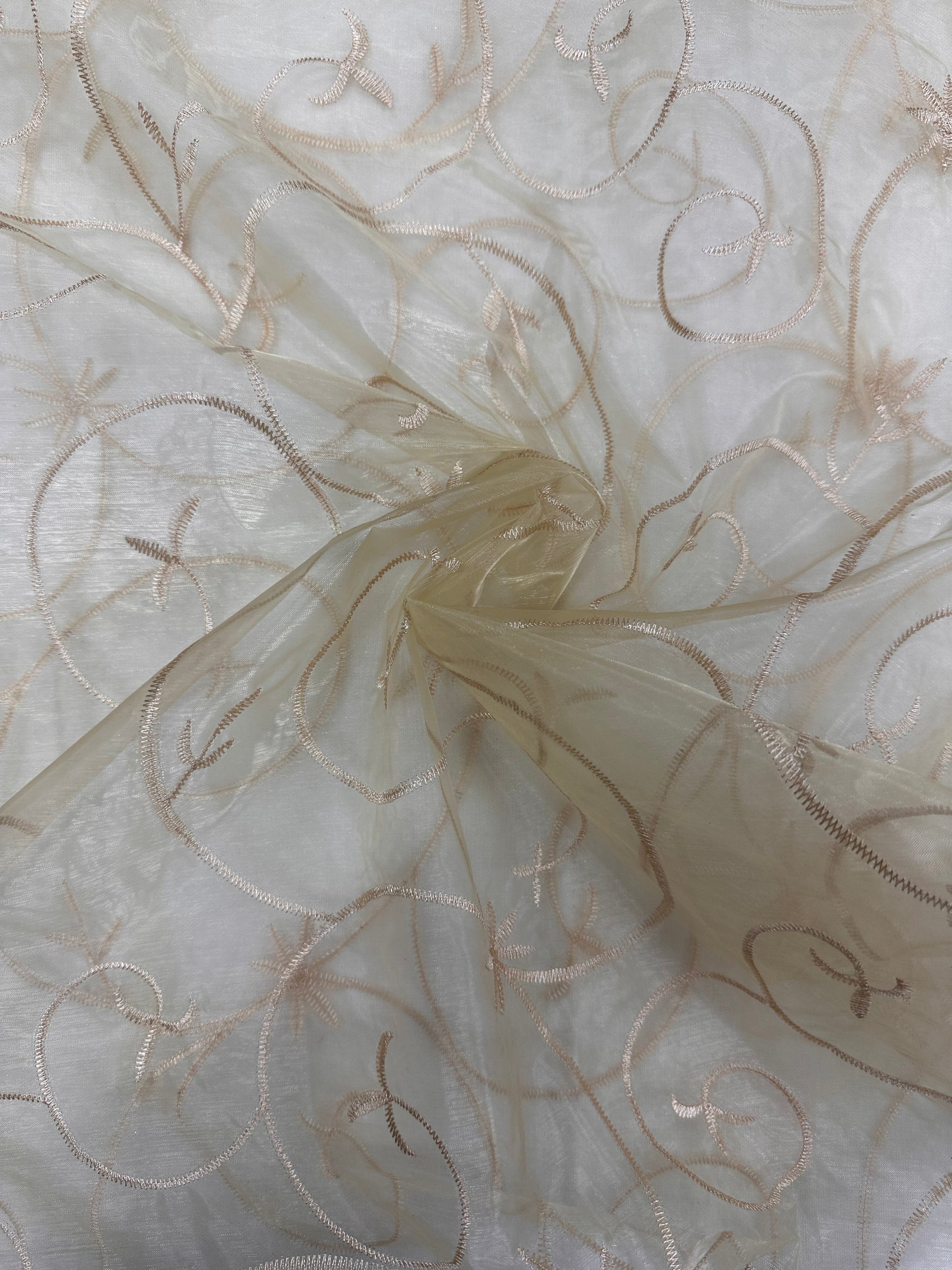 By the Yard Gold Embellished Vines Organza